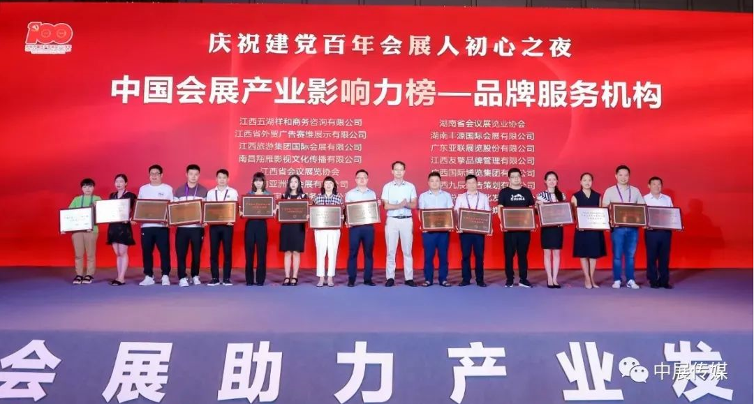 2021年7月16日晚,慶祝建黨百年會(huì)展人初心之夜順利舉辦,活動(dòng)中對(duì)中國(guó)會(huì)展產(chǎn)業(yè)影響力榜單進(jìn)行發(fā)布,現(xiàn)場(chǎng)頒布了“活力會(huì)展城市”、“品牌服務(wù)機(jī)構(gòu)”及“會(huì)展新銳媒體”三項(xiàng)獎(jiǎng)項(xiàng)。廣東亞聯(lián)展覽股份有限公司榮獲“中國(guó)會(huì)展產(chǎn)業(yè)影響力榜-品牌服務(wù)機(jī)構(gòu)”稱(chēng)號(hào),董事長(zhǎng)方平上臺(tái)領(lǐng)獎(jiǎng)。
